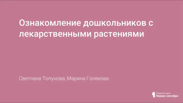На занятии дети знакомятся с лекарственными растениями нашей полосы, с местами их произрастания, внешним видом, назначением и пользой. Конспекты и учебный материал используются воспитателями в беседах, на игровых и творческих занятиях, в проведении досугов.