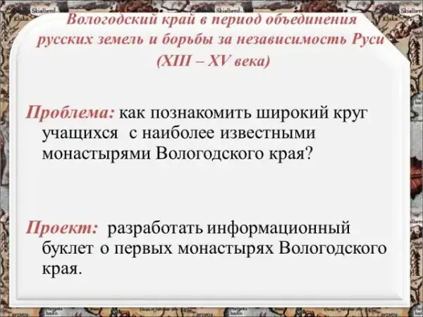 Урок-проект разработан для учащихся 10-го класса с ограниченными возможностями здоровья. В период работы над проектом учащиеся находятся в тесном контакте со своими сверстниками, активно взаимодействуют и сотрудничают друг с другом, расширяется их круг общения, у школьников появляется чувство собственной значимости для окружающих. Знание исторического прошлого может укрепить в детях почитание традиций и человеческих ценностей: любви к Родине, доброты и справедливости.
