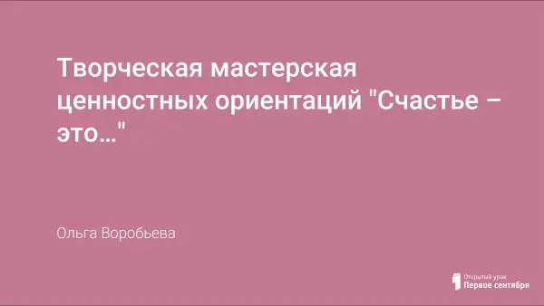 Старшеклассники размышляют о смысле понятия «счастье», стимулируется саморазвитие, стремление сознательно строить свое поведение и жизнь, раскрываются творческие способности учащихся, развиваются навыки рефлексии и позитивного мышления.