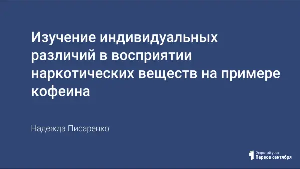 В работе представлены результаты изучения индивидуальных различий в восприятии наркотических веществ на примере кофеина у людей разного пола и возраста. Для доказательства индивидуальной восприимчивости к наркотикам учитель и ученики исследовали воздействие кофеина (чашечки крепкого кофе) на артериальное давление.