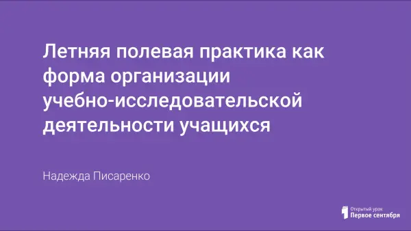 В моей педагогической работе накоплен опыт работы по организации исследовательской деятельности в рамках проведения летней полевой экологической практики, которая проводится ежегодно в период летних каникул в течение 14 дней. Основная идея летней полевой практики – вынести преподавание биологии и экологии за пределы школьного кабинета биологии, вести обучение через решение прикладных исследовательских и проектных задач непосредственно на природных объектах.