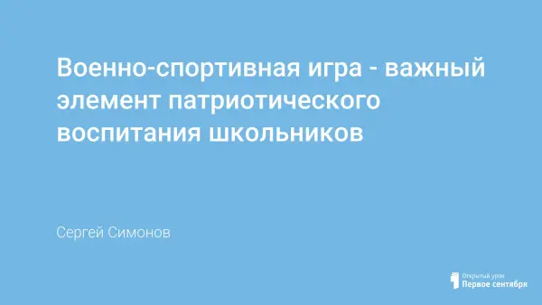 Военно-спортивная игра – является одним из элементов патриотического воспитания школьников. Она может проводиться, в параллели между классами, между разновозрастными группами, в масштабах школы и образовательной сети, т.е. от двух школ и более. При проведении игры следует учитывать опыт организаторов, возможности материально-технического обеспечения, меры безопасности и погодные условия.