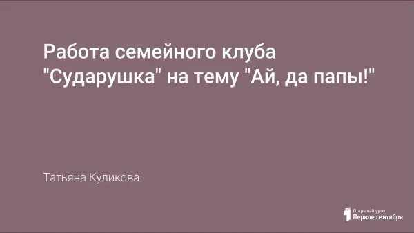 Занятие в семейном клубе "Сударушка" освещает вопрос "Роль отцов в воспитании детей".
