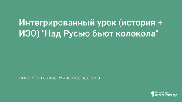 Интегрированный урок истории и изобразительного искусства проведён с использованием регионального компонента. Целью урока является знакомство с историей, легендами, использованием колоколов; обучение рисованию на объёмном предмете (колокольчике); воспитание гордости и любви к родному краю, эмоциональной отзывчивости на прекрасное; формирование духовно-нравственного отношения к малой родине.
