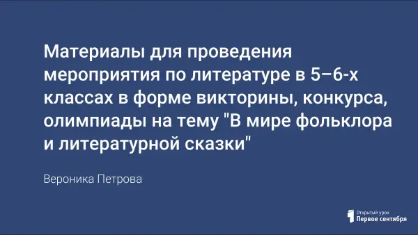 Игровая форма позволяет сделать обобщение увлекательным, помогает развить интерес к изучаемому предмету, стимулирует познавательную деятельность учащихся. В работе приводятся вопросы и задания для участников викторины, вопросы для зрителей, ссылки на интернет-сайты, где можно найти иллюстрации к сказкам и былинам, а также музыкальные фрагменты по теме, которые можно использовать для оформления мероприятия.