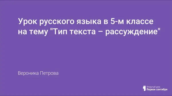 Урок русского языка проводится с целью рассмотреть отличие рассуждения от повествования и описания, познакомить с планом-схемой рассуждения, научить строить текст-рассуждение по плану, развивать связную речь и коммуникативную активность учащегося.