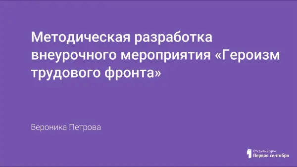 Внеурочное мероприятие посвящено теме трудового подвига народа во время Великой Отечественной войны 1941–1945 годов. Многие дети на вопрос про родственников – участников войны часто отвечают, что в их семье таких нет, потому что никто не воевал, не понимая, что, как правило, если родственники не участвовали в сражениях, то они трудились в тылу. Работа на заводах, в колхозах, в научных институтах и т.п. не воспринимается как участие в войне и вклад в победу. Задача мероприятия показать роль трудового тыла в Победе над врагом и важность каждой семьи в этом.