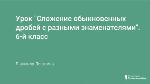 Урок является первым в теме «Сложение и вычитание обыкновенных дробей с разными знаменателями». В его основе лежит использование технологии проблемно-диалогического обучения, позволяющей заменить урок объяснения нового материала уроком «открытия» знаний. Цель урока – выучить правило сложения обыкновенных дробей с разными знаменателями.