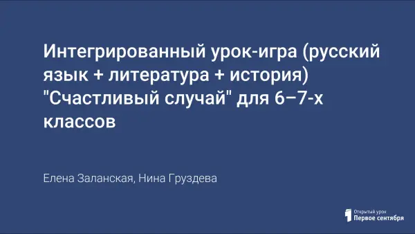 В статье представлена разработка интегрированного урока по русскому языку, литературе и истории в форме игры "Счастливый случай". Игра - очень естественная для ребёнка форма обучения. Через игру дети и подростки лучше понимают и усваивают материал. Игра - это всегда активная деятельность детей. Она объединяет эмоциональный и рациональный виды познавательной деятельности. Игра создает условия, при которых развиваются творческие способности.