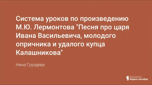 Уроки разработаны по методике проектирования. Цель уроков: обсудить главную проблему, поднятую М.Ю. Лермонтовым в произведении «Песня про царя Ивана Васильевича, молодого опричника и удалого купца Калашникова», – невозможность героя покориться произволу, герой отстаивает справедливость даже ценой собственной смерти.
