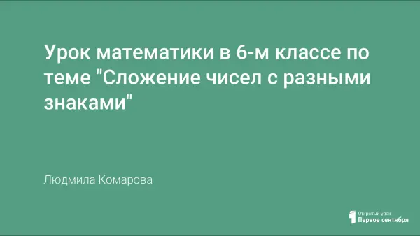 Урок призван вывести правило сложения чисел с разными знаками и провести его первичное закрепление, способствовать развитию логического мышления, познавательной активности учащихся, созданию условий для включения учащихся в активную учебно-познавательную деятельность.