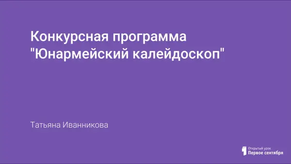 Конкурсная программа предназначена для обучающихся профильных объединений – юнармейских отрядов (7–8-е классы). Она воспитывает у учащихся чувство патриотизма и любви к Родине, уважительное отношение к защитникам Отечества, стремление служить в армии, развивает и углубляет знания истории родного края и страны, расширяет кругозор.