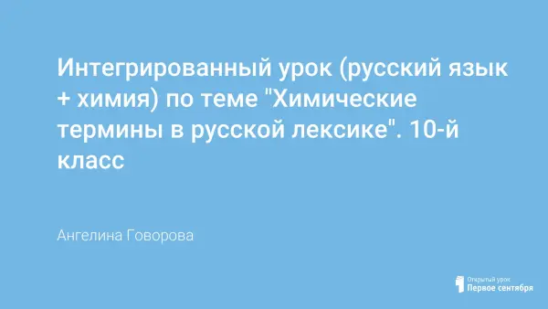 На занятии расширяется понятие о русской лексике, развиваются умения определять смысловые значения химических терминов через формы русской лексики и фольклора на примерах пословиц, поговорок, загадок и т.д.