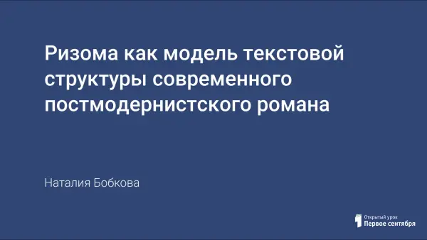 В центре внимания автора статьи рассматривается литературоведческое понятие ризомы, как одно из ключевых понятий постмодернизма. «Корневище» романов писателей - постмодернистов четко проявляет себя в таких концепциях как аллюзии, реминисценции, цитатность, коллажность, фрагментарность, нелинейность повествования, смешение жанров и стилей. Многоуровневость постмодернистских текстов порождают их двуадресность, создают возможность диалога элитарной и массовой культур. Образ библиотеки-лабиринта как синонима ризомы в литературе используют современные писатели в постмодернистском романе или романе-ризоме, где размываются «кореневища» разных жанров с целью выразить цикличность человеческой культуры, показать духовный поиск как лабиринт, в котором невозможно найти истину. Рождается современный роман, представляющий собой весь комплекс «постмодернистской чувствительности».