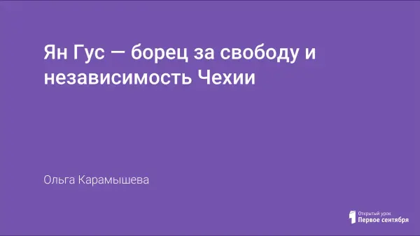 На уроке учащиеся изучают предпосылки общенародного движения в Чехии против гнёта католической церкви, знакомятся с биографией Яна Гуса, характеризуют его реформаторскую деятельность. В уроке присутствует момент театрализованного представления.