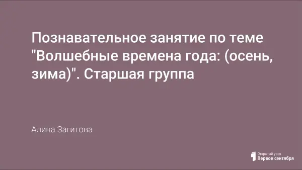 На занятии экологической направленности дети старшей группы уточняют и расширяют свои представления о характерных признаках сезонных явлений, о поведении зверей и птиц, о деятельности человека в осенний и зимний период.