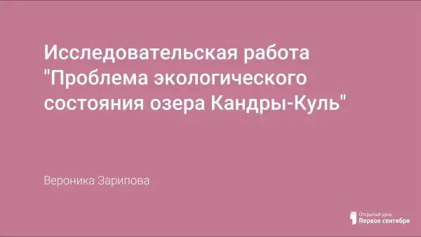 Целью исследования является определение причин загрязненности озера Кандры-Куль: изучение особенностей строения ландшафта берегов озера; антропогенное влияние на флору и фауну озера и качества самой воды; определение мер защиты национального парка на доступном уровне.
