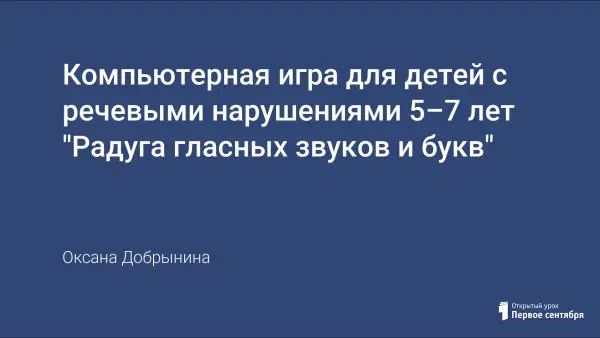 Формирование фонематических представлений ребенка на материале гласных звуков возможно в презентаций. Игра систематизирована главным меню, логически выстроена, понятна педагогу и родителям. Ребенок легко управляется с игрой, но присутствие взрослого необходимо, он контролирует и стимулирует речь во время игры.