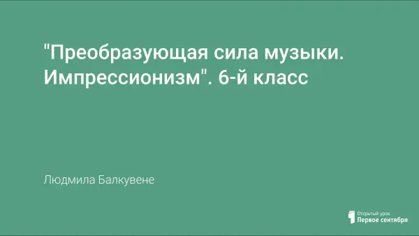 Учащиеся знакомятся с импрессионизмом как направлением в искусстве: в живописи (Клод Мане), музыке (Клод Дебюсси), поэзии (С.Малларме, Ш.Бодлер). Цель урока – способствовать воспитанию развитого, творческого человека с его миром переживаний и чувств.
