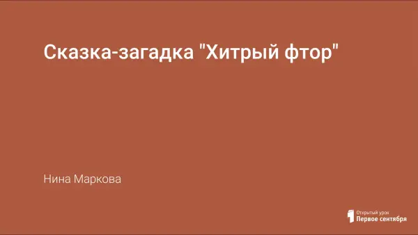 Темы уроков: "Основные типы химической связи", "Электроотрицательность" всегда трудны для восприятия учащимися. Эта сказка-загадка может быть предложена детям в завершении данных тем или на уроке-обобщении. В стихотворной форме легче воспринимать материал любому ребенку, слова легко рифмуются, и запоминается главная мысль сказки, когда преподаватель преподносит фтор не как химический элемент, а как одушевленную фигуру. В завершении учащимся предлагается написать формулы соединений.