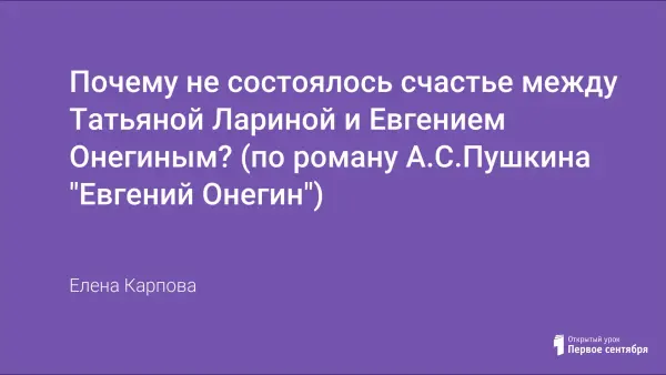 Цели урока: рассмотреть причины драмы несостоявшейся любви Татьяны и Онегина через мотивацию поступков героев романа; закончить прочтение романа; развитие умения и навыков филологического анализа литературного произведения; развитие мыслительных навыков: умение решать проблемы, принимать взвешенные решения, анализировать различные стороны явлений; развитие способности к самостоятельной аналитической и оценочной работе с информацией любой сложности.