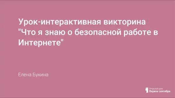 Урок формирует навыки безопасной работы в сети Интернет. Интерактивная викторина закрепляет знания, полученные на уроках информатики и ОБЖ, учит ребят работать в команде.