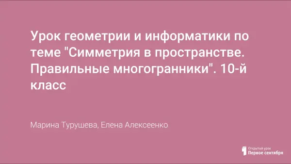 Урок геометрии и информатики по теме "Симметрия в пространстве. Правильные многогранники". 10-й класс