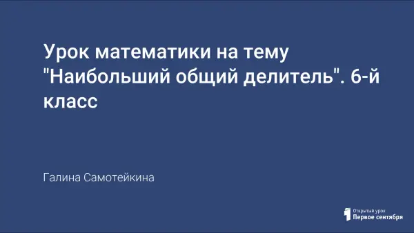 На уроке вводится понятие наибольшего общего делителя, учащиеся знакомятся с алгоритмом нахождения наибольшего общего делителя. На уроке в работе используется презентация и Uni-тест «Разложи меня».