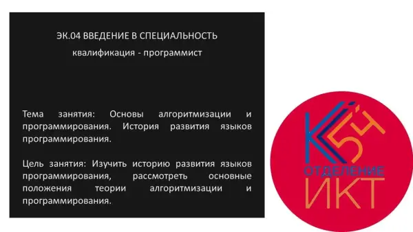 Цель занятия: изучить историю развития языков программирования, рассмотреть основные положения теории алгоритмизации и программирования.