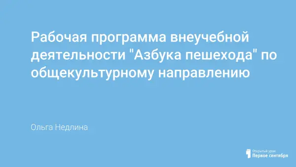 Рабочая программа внеучебной деятельности "Азбука пешехода" по общекультурному направлению