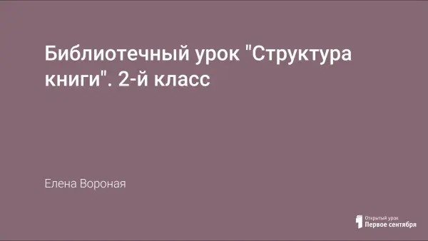 Библиотечный урок для 2-го класса знакомит учащихся со структурой книги, дает первые навыки самостоятельной работы с книгой. Форма проведения: беседа-просмотр презентации.