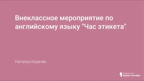 Внеклассное мероприятие по английскому языку "Час этикета"