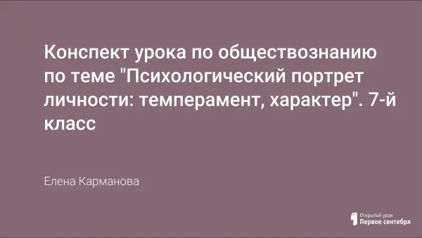 Конспект урока по обществознанию по теме "Психологический портрет личности: темперамент, характер". 7-й класс