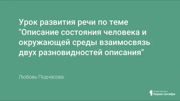 Урок развития речи по теме "Описание состояния человека и окружающей среды взаимосвязь двух разновидностей описания"