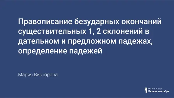 Урок направлен на выработку умений и навыков находить существительные, определять склонение и падеж существительных, правильно писать окончания. Выработка умения рассуждать при написании окончаний существительных; закрепление знаний о написании окончаний существительных 1, 2 склонения.