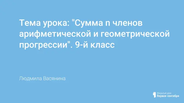 Серия уроков открытия новых знаний, закрепления и обобщения дается в сравнении одной прогрессии с другой. Для закрепления и контроля знаний составлены таблицы заданий по 4-м типам задач (нахождение одной величины по известным трем) для арифметической и геометрической прогрессии. Приложена презентация к урокам.