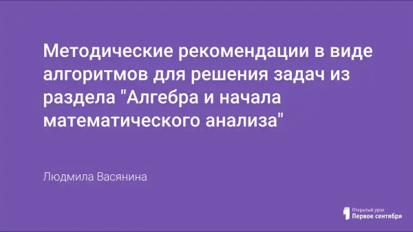 Невозможно решать задачи, уравнения, неравенства, не зная алгоритмов их решения. В последние годы в содержание курса математики естественным образом закладывается алгоритмическая линия. Работа призвана научить применять алгоритмы в решении задач алгебры и начала математического анализа, сформировать навыки самоконтроля и взаимоконтроля.