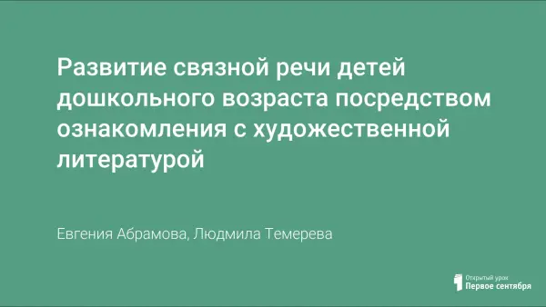 Развитие связной речи детей дошкольного возраста посредством ознакомления с художественной литературой