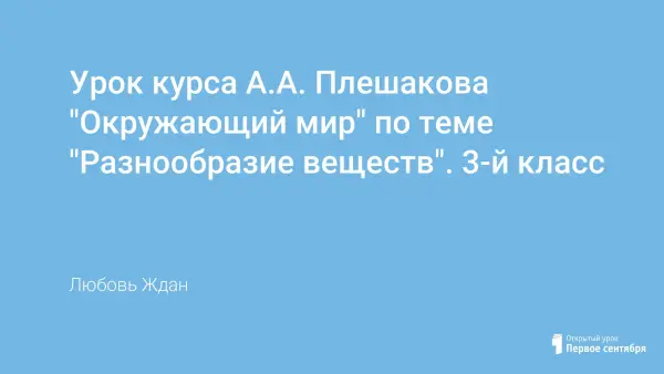 Цель урока: научить правильно употреблять понятие «вещество»; познакомить с веществами, их свойствами; создать условия для формирования навыка исследовательского поведения; развивать умения аргументированно отстаивать свою точку зрения, работая в группах.