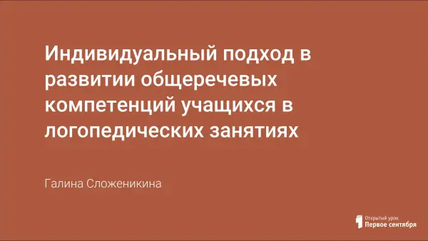 Индивидуальный подход в развитии общеречевых компетенций учащихся в логопедических занятиях