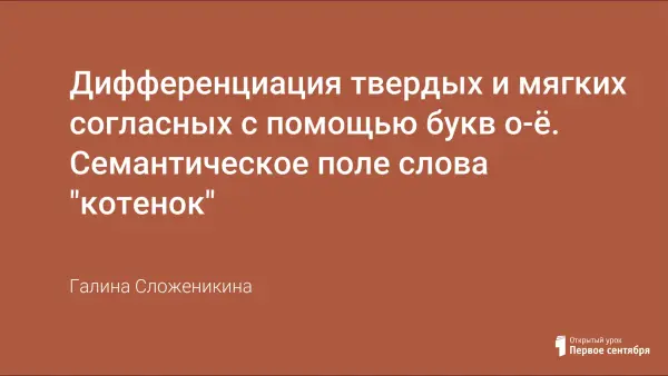 Дифференциация твердых и мягких согласных с помощью букв о-ё. Семантическое поле слова "котенок"
