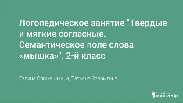 Логопедическое занятие "Твердые и мягкие согласные. Семантическое поле слова «мышка»". 2-й класс