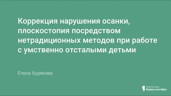 Показан опыт работы с умственно отсталыми детьми: индивидуальные и групповые занятия по профилактике и коррекции плоскостопия и нарушение осанки с учетом индивидуальных и типологических особенностей психофизического развития и индивидуальных возможностей воспитанников детского дома-интерната. Используются нетрадиционные методы коррекции: логоритмические, кинезиологические, йоговские упражнения; применяются: массажные мячи, тактильные и массажные коврики, тренажеры для коррекции плоскостопия.