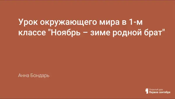 Урок разработан для обучающихся 1-го класса. Цели урока: закрепить знания об изменениях в природе, связанных с различными периодами осени; развивать наблюдательность и умение делать выводы; правильное отношение к общечеловеческим ценностям и окружающей среде.