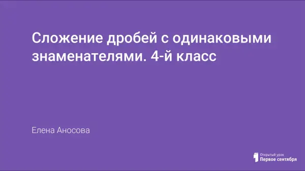 На уроке формируются способности учащихся к построению алгоритма сложения дробей с одинаковыми знаменателями, применять правило сложения дробей с одинаковыми знаменателями, находить способы вычисления значений выражений.
