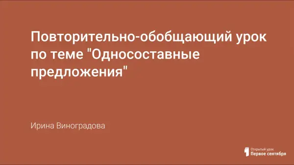 Урок направлен на обобщение сведений об односотавных предложениях в 8-м или в 11-м классах при подготовке к ЕГЭ. Проводится в форме урока-презентации. В конспекте урока приводится два варианта теста по теме "Виды односотавных предложений".
