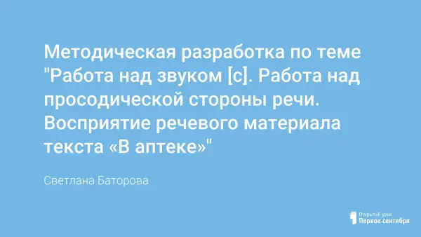 Цели урока: формирование просодической стороны речи; развитие слухового восприятия на материале всего занятия и по теме «В аптеке».