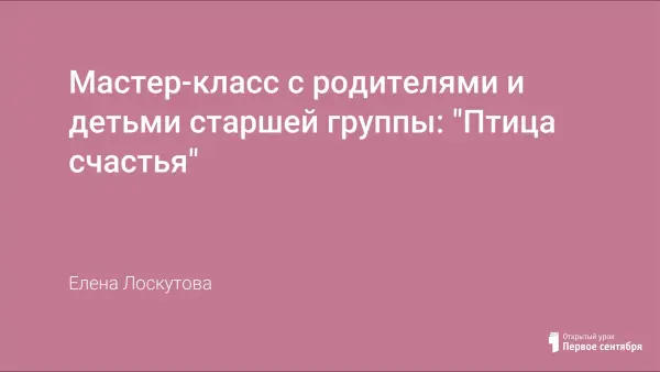 Мастер-класс для детей дошкольного возраста и их родителей с целью познакомить с техникой "оригами", научить складывать птицу счастья в технике "оригами".