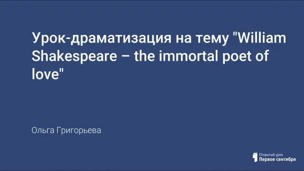 Урок направлен на изучение жизни и творчества выдающегося английского поэта В.Шекспира и предполагает создание языковой среды и формирование положительной мотивации для роста творческого потенциала учащихся и стимулирования их речевой деятельности.