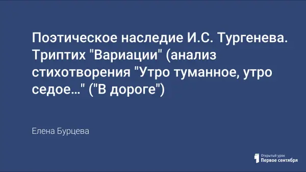При изучении лирических произведений Тургенева особое место занимает стихотворение «Утро туманное, утро седое…». В данной работе затронуты не только тема и идея стихотворения, но и рассмотрены семантическое значение слов, лексические и морфологические средства выразительности, с помощью которых поэту удалось достичь такого совершенного творения. Работа строится на основе комплексной методики исследования, широко представленной в работах профессора Болотновой Н.С.